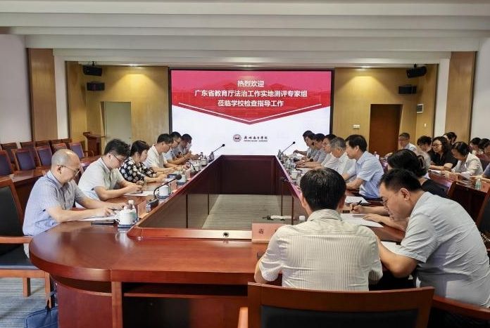 7月5日,广东省教育厅法治工作测评专家组一行6人莅临我校开展法治工作实地测评,此次测评分为工作汇报、材料核查、实地查看、调研访谈和测评结果反馈五个环节。学校领导班子成员以及相关职能部门负责人、师生代表参加了相关测评工作。